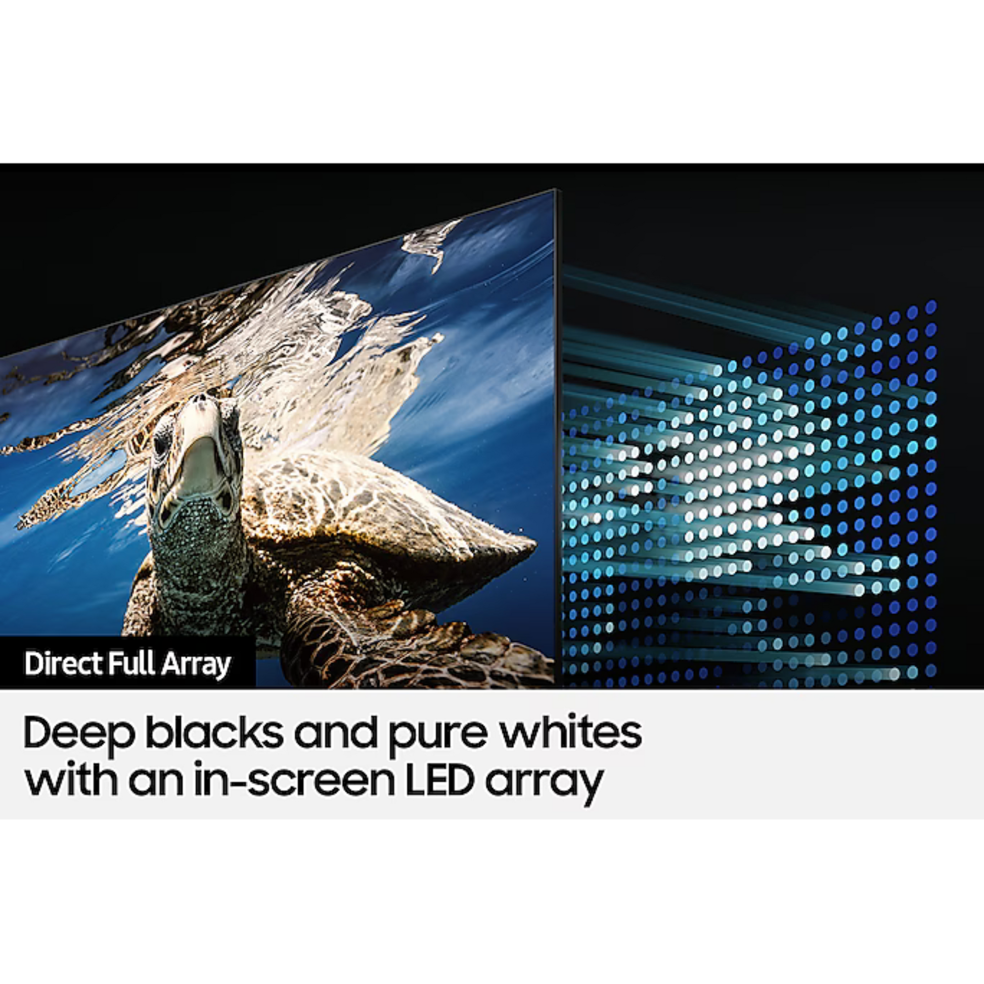 Experience deep blacks and pure whites with an in-screen LED Direct Full Array.
